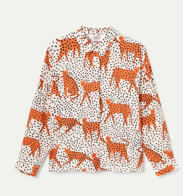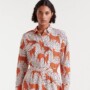 Camisa de tejido crepé ligero con estampado Tano. Cuello con solapa y manga larga terminada en puño con botón. Cierre frontal con botones. La modelo mide 175 cm y lleva la talla S.